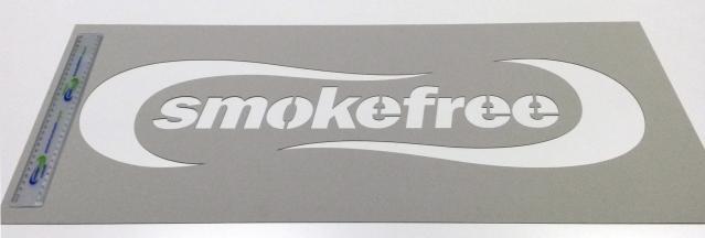 | Re-usable cardboard stencil for smokefree areas. To use, place the stencil on the surface to be labelled and either paint or spray over. |